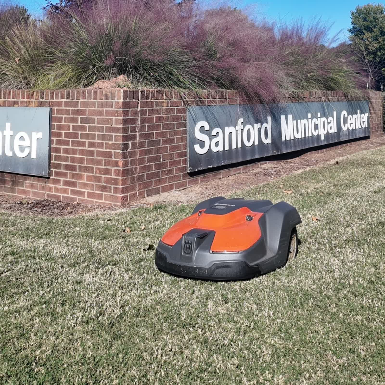 Em Sanford, na Carolina do Norte, dez robôs cortadores de grama movidos a bateria mantêm cerca de seis acres de grama ao redor da prefeitura e das torres de água próximas. Eles cortam a grama por até 23 horas por dia e retornam automaticamente às bases de carregamento quando necessário.