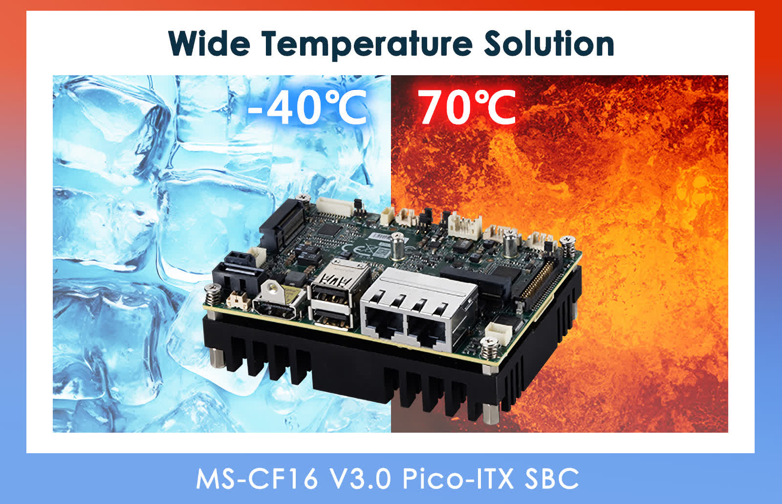 A MSI afirmou que a placa funciona de forma confiável em ambientes hostis, com uma faixa de temperatura operacional de -40 °C a 70 °C. Seu conector de alimentação direta de 12 V garante compatibilidade com fontes de alimentação industriais padrão, simplificando a integração em projetos personalizados.